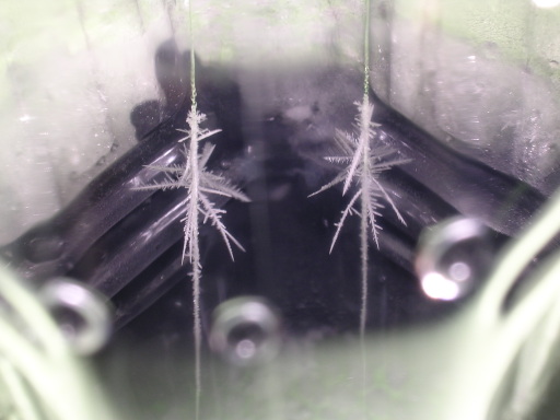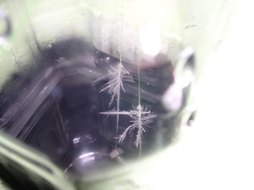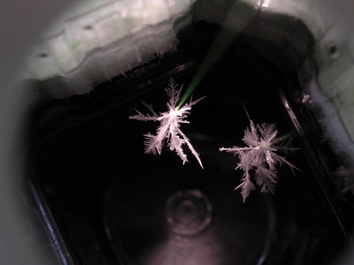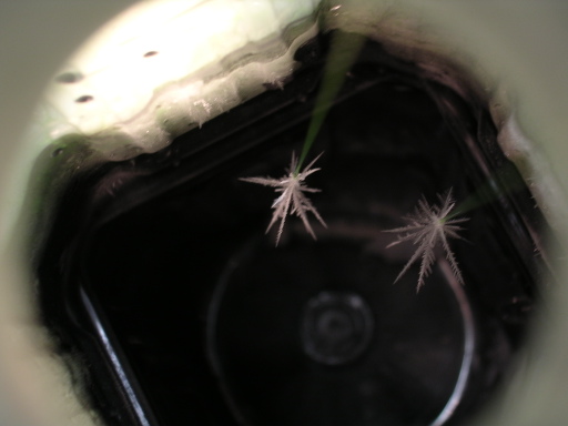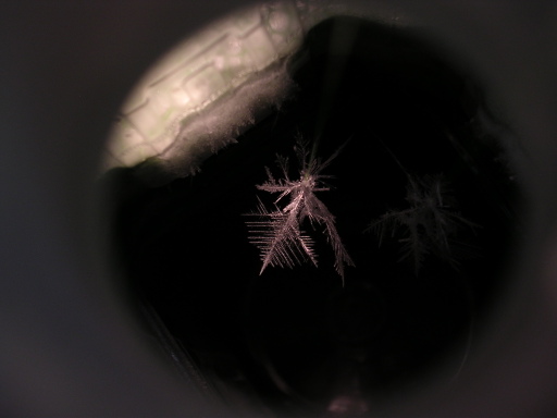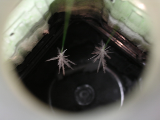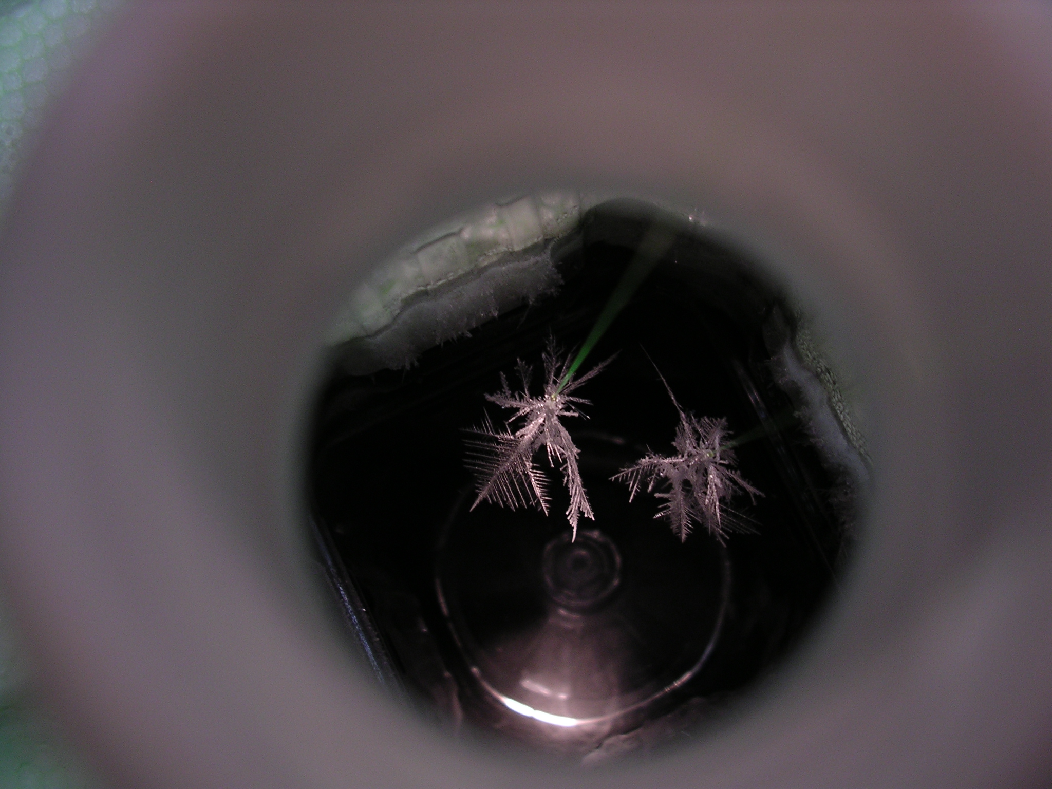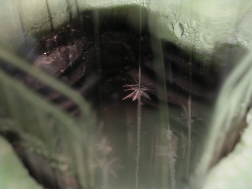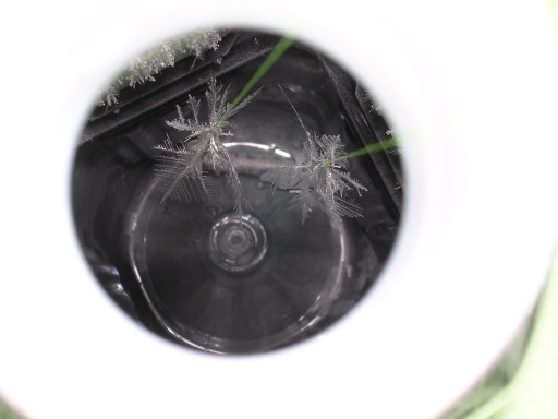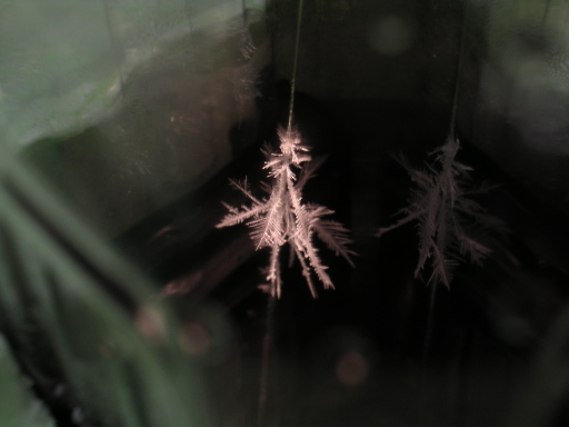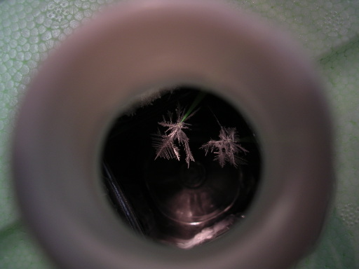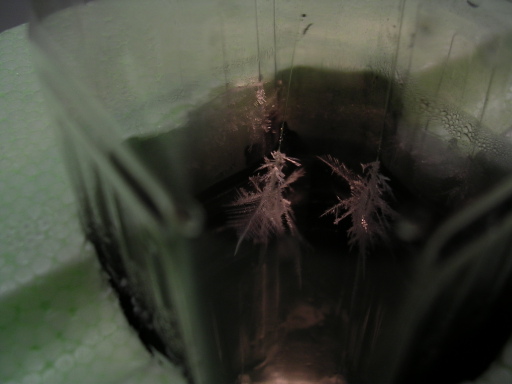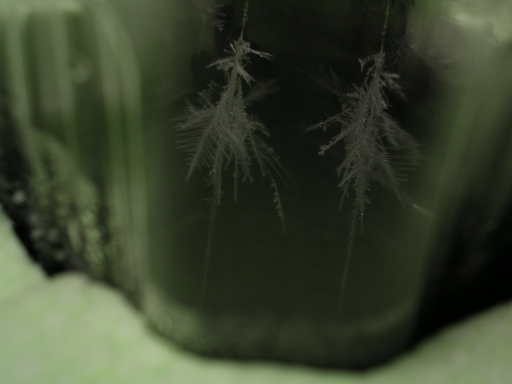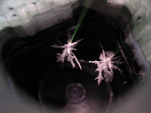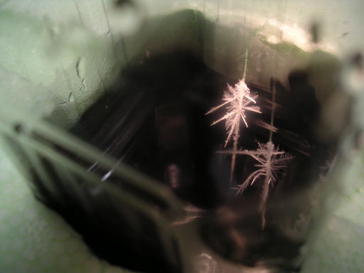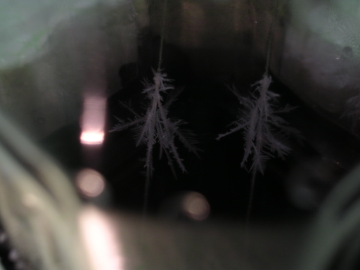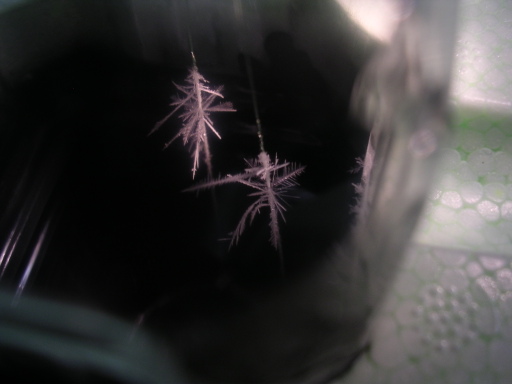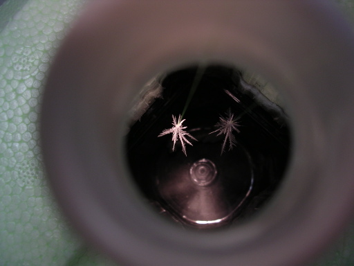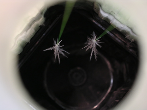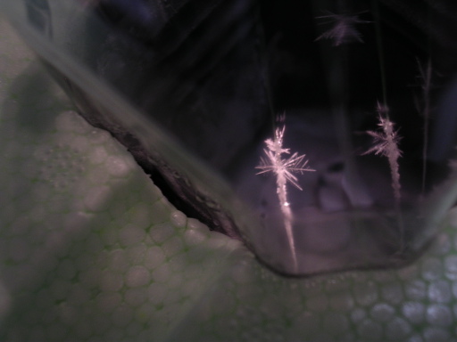 よく見ると、樹枝状結晶の上1〜2cmぐらいのところでは針状結晶が