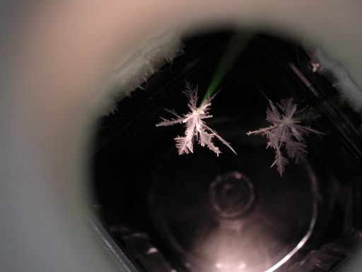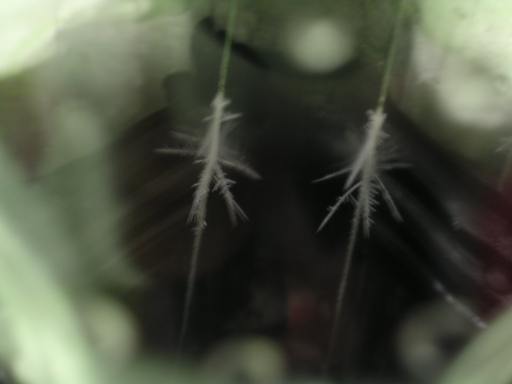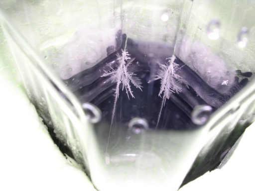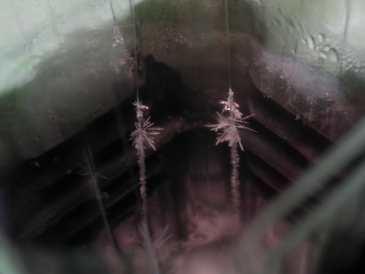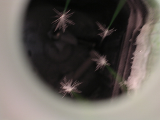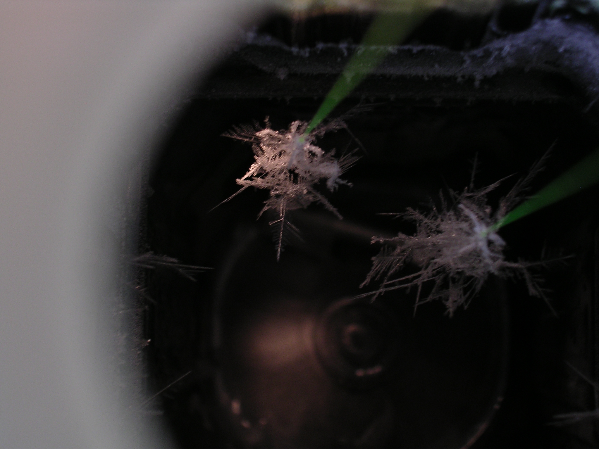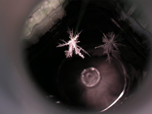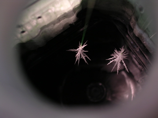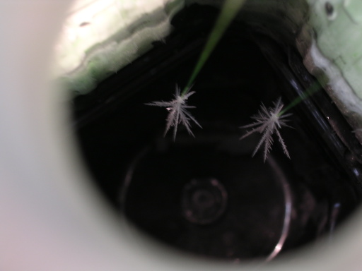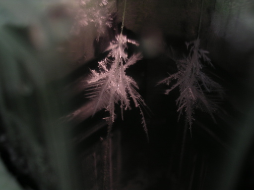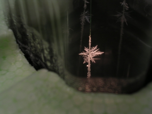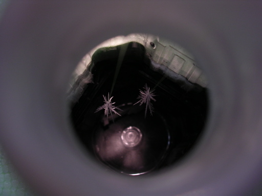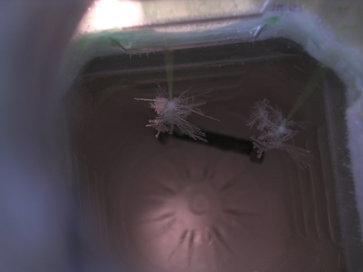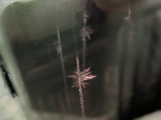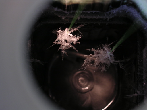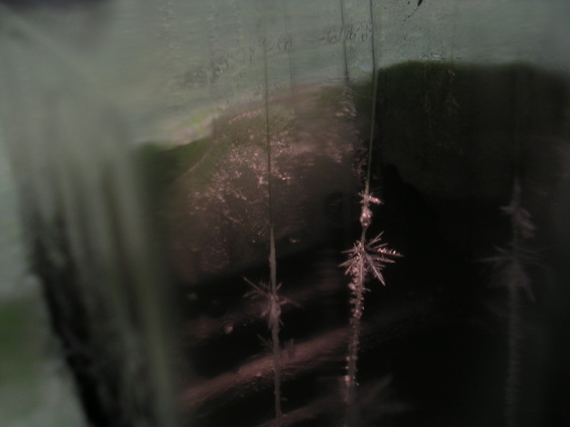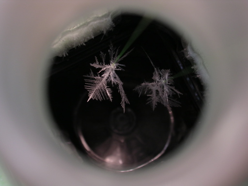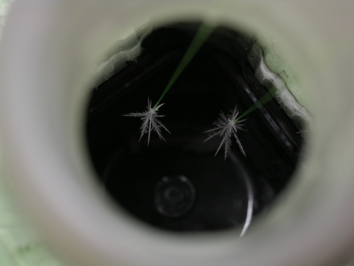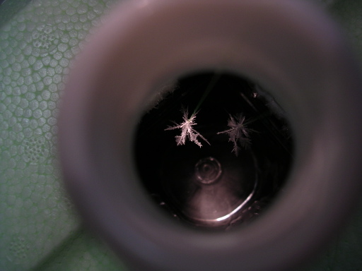 よく見ると、樹枝状結晶の上1〜2cmぐらいのところでは針状結晶が