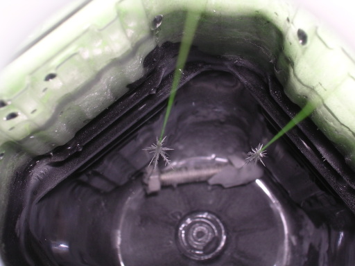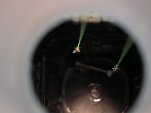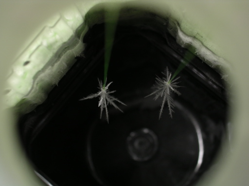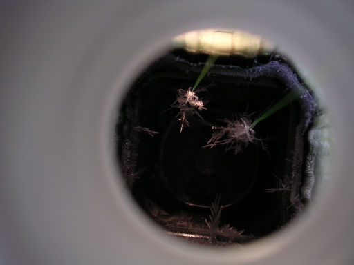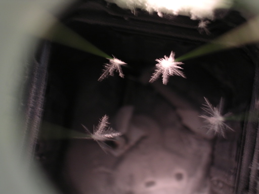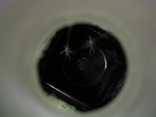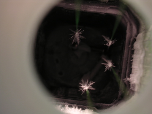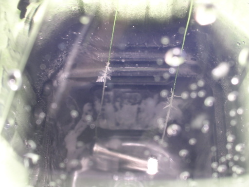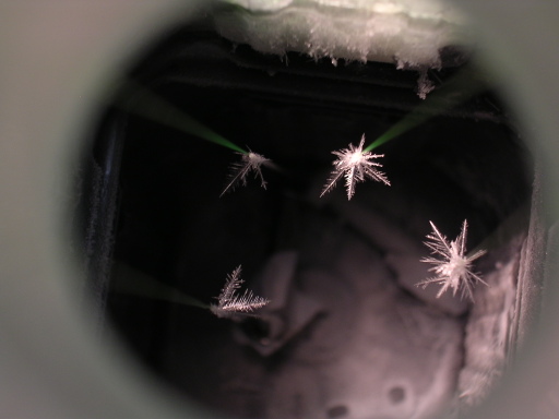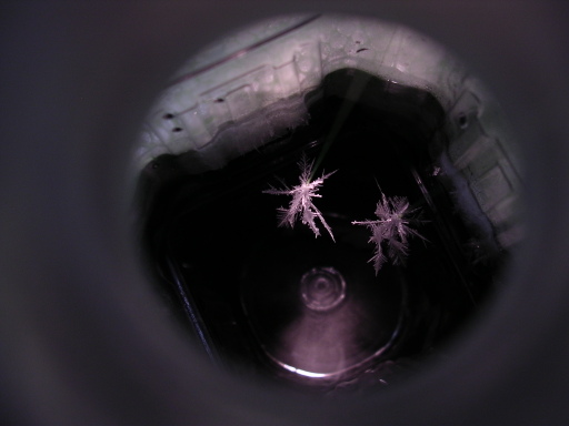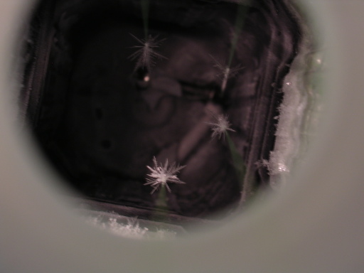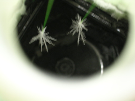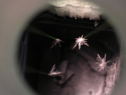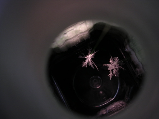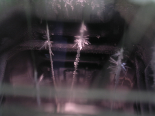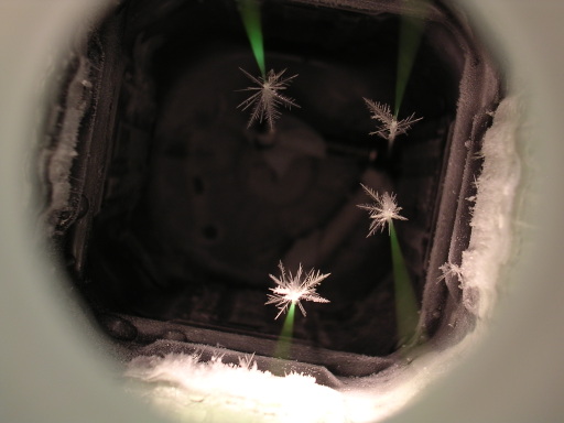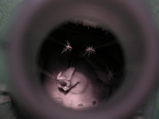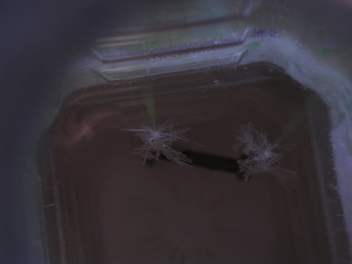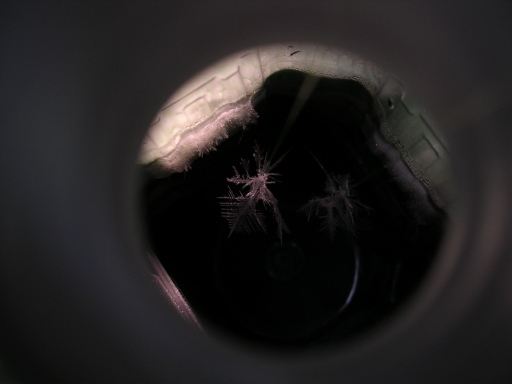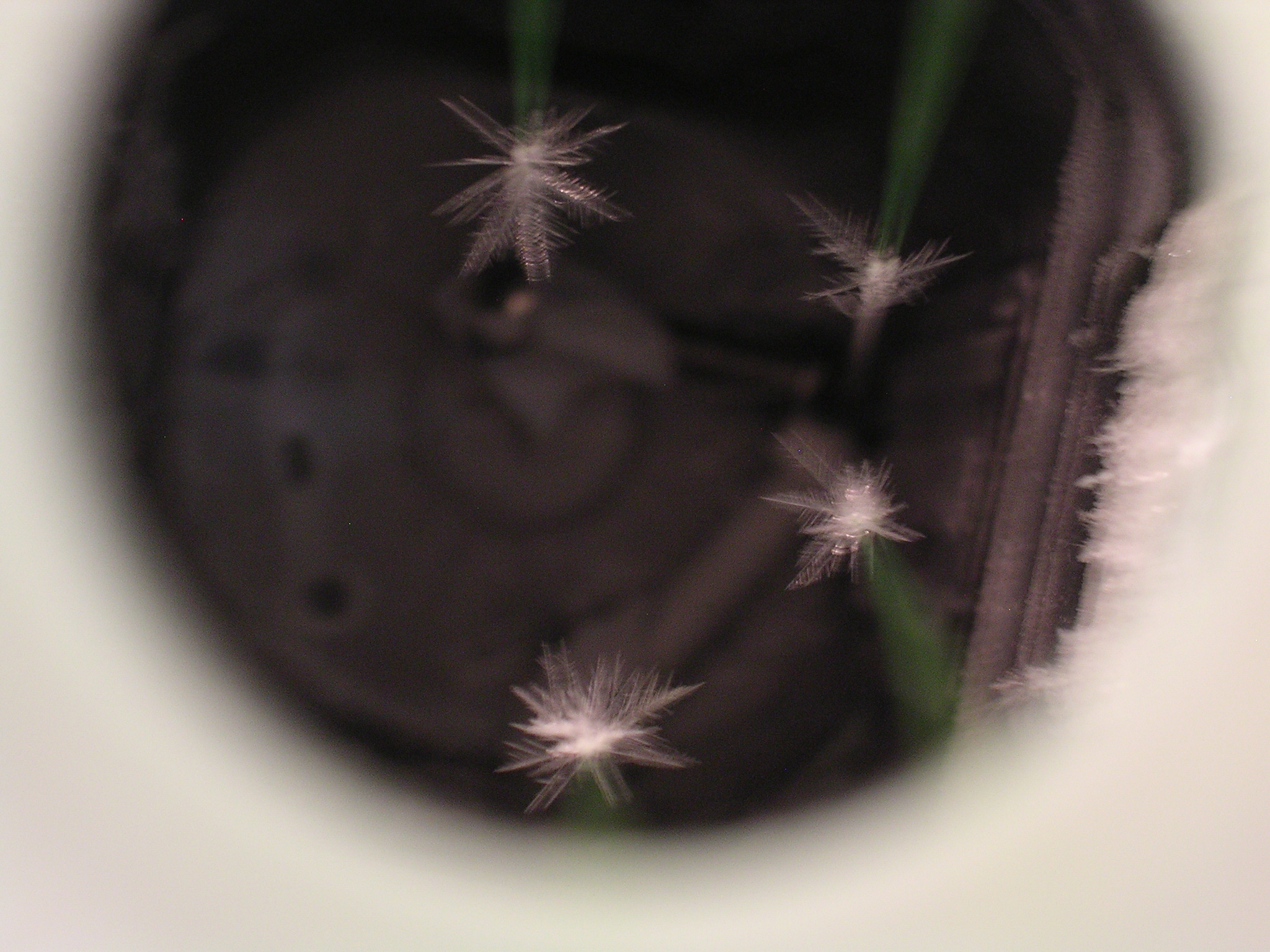 よく見ると、樹枝状結晶の上1〜2cmぐらいのところでは針状結晶が