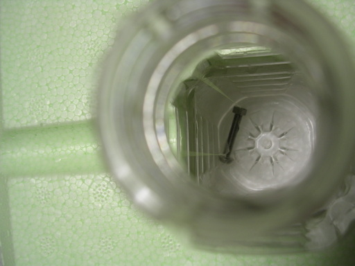 見やすくするため、ペットボトルのうち一本は下を黒く塗っています。