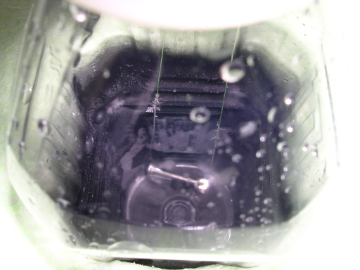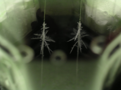 1時間もたつと、結晶は自重で傾いてしまいます。